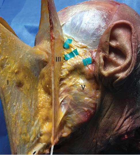 III- sistema músculo-aponeurótico superficial (SMAS);