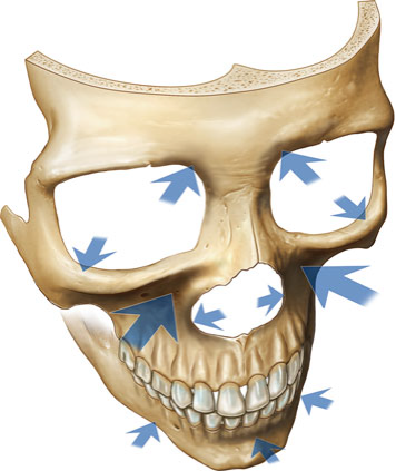 Áreas com uma forte predisposição à reabsorção, incluem o terço médio da face, particularmente a maxila, incluindo região piriforme do nariz, porções superomedial e inferolateral da borda orbital e a área pré-jowl da mandíbula. Essas áreas são reabsorvidas de maneira específica e previsível com o envelhecimento. (MENDELSON E WONG, 2012).