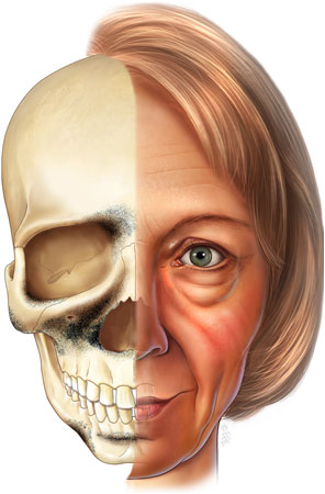 Em relação ao esqueleto, Mendelson e Wong (2012) sugerem que a perda óssea em áreas específicas da face, por muito tempo subestimada, reduz o suporte do tecido mole sobreposto e parece contribuir significativamente para uma aparência envelhecida.