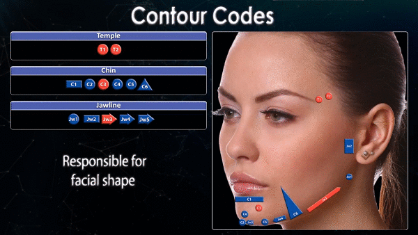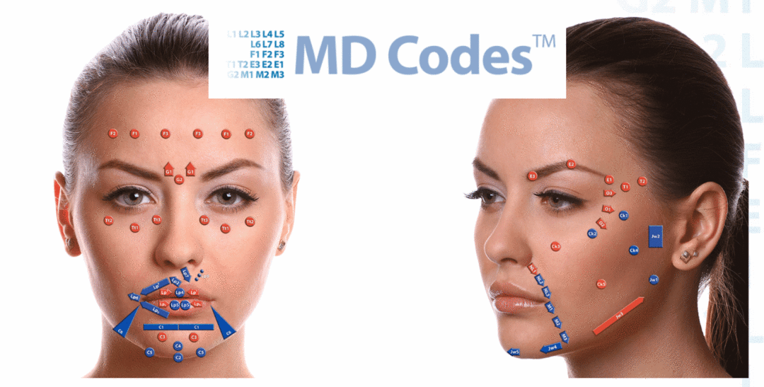 O MD Codes™ é um mapa de pontos de injeções faciais para preenchimento dérmico cujos pontos mapeados são estratégicos para a aparência de rejuvenescimento da pele, sustentação, contorno e harmonia facial. Eles consistem em um número variável de locais de injeção divididos em áreas anatômicas respeitando, sempre, o formato e as particularidades de cada rosto. Serve como um guia fantástico para orientar tratamentos de preenchimento facial.