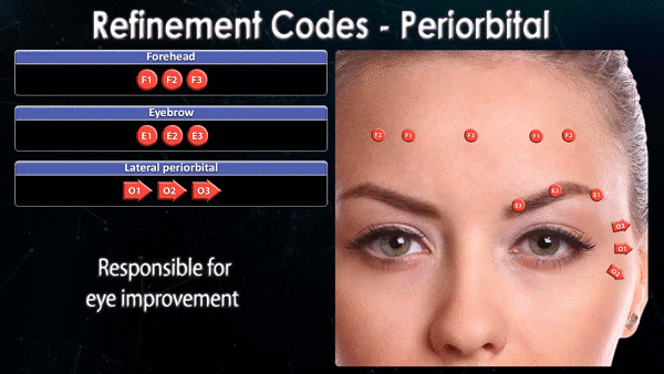 São os pontos responsáveis pelo aperfeiçoamento dos olhos - região extremamente relevante nos requisitos de atração e beleza. São os pontos da testa, sobrancelhas e periorbital lateral (região dos pés de galinha).