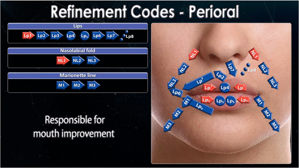 E por fim temos os pontos de aperfeiçoamento bocal. Compõe este grupo os pontos dos lábios, dobra nasolabial e linha de marionetes.