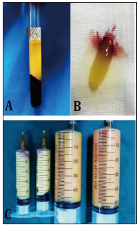 Adicionalmente, Wang et al. (2019) disseram que uma das principais vantagens de usar IPRF é o seu baixo custo em comparação com outros procedimentos mais invasivos, uma vez que o sangue é coletado sem o uso de anticoagulantes, sendo essa terapia totalmente autóloga. Tendo a formação de um coágulo de fibrina durante a centrifugação.