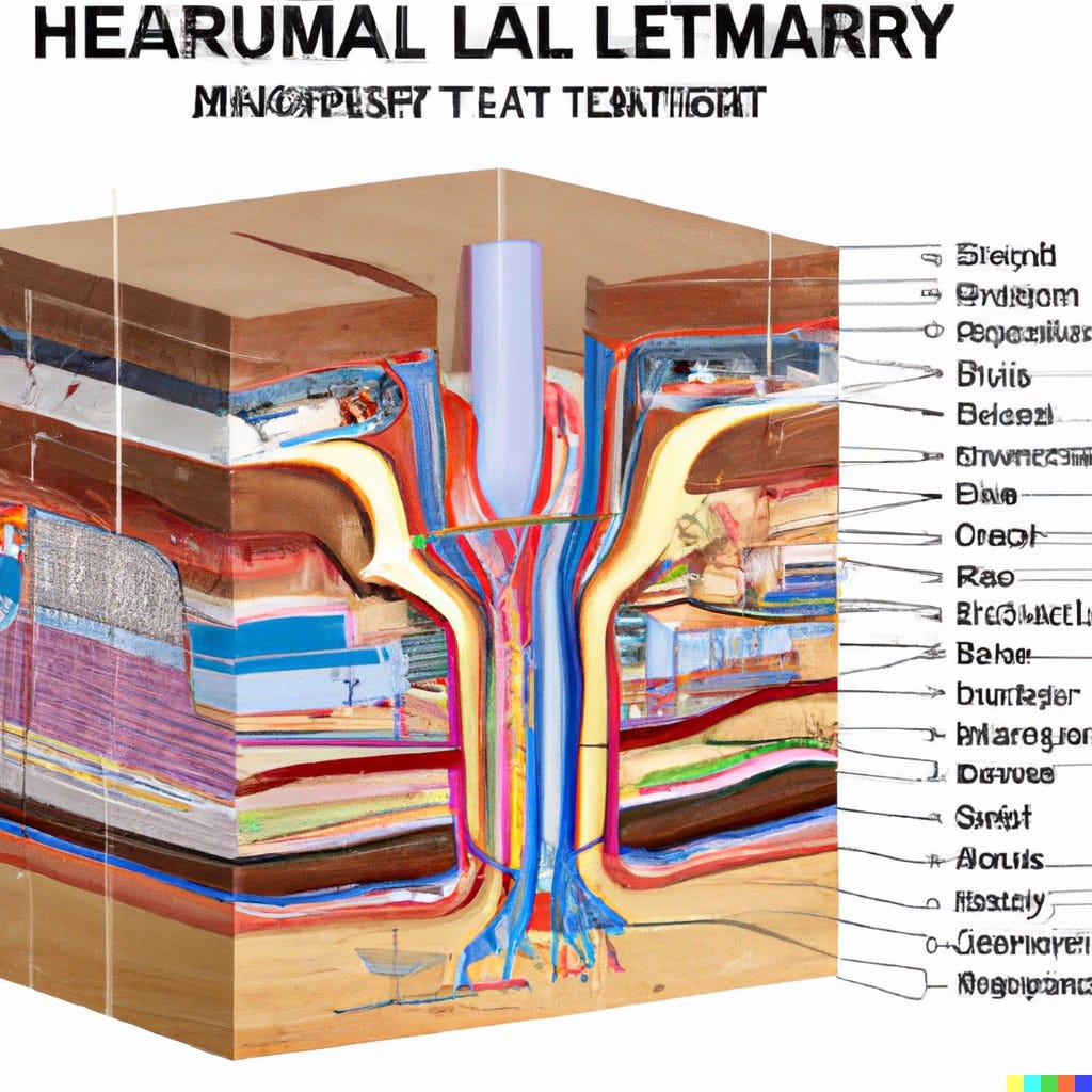 Se depender da Inteligência artifical para gerar imagens anatômicas, o resultado pode sair igual a um Bolo arco-iris... O pedido foi: Ilustração mostrando todas as camadas da região de têmpora. Saí isso aí...