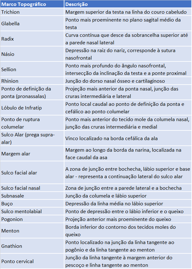 Tabela 2.1 - Topografia Nasal