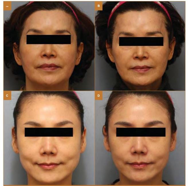 Jung HJ, Min J, Seo HM, Kim WS. Comparison of effect between high intense focused ultrasound devices for facial tightening: Evaluator-blinded, split-face study. Journal of Cosmetic and Laser Therapy. 2016;18(5):252–256.
