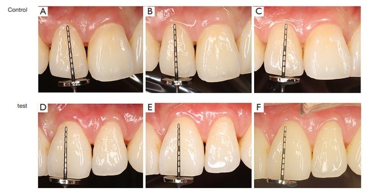 Contudo, em estudo de Ni et al. (2021) a melhora nas papilas gengivais deficientes 12 meses após a injeção de solução salina é surpreendente. Os autores presumem que tanto a injeção de AH ou solução salina aplica alguma força compressiva aos fibroblastos gengivais, o que também pode acelerar a proliferação das células e aumentar a formação de matriz extracelular, melhorando os defeitos da papila gengival.