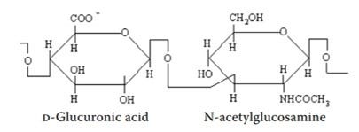 O AH é um polissacarídeo longo e não ramificado composto por dissacarídeos repetidos de D-glucurônico e N-acetil-D-glucosamina com peso molecular (MW) atingindo até 2 × 107 Da. Foi isolado pela primeira vez por Karl Meyer e John Palmer em 1934 do corpo vítreo do olho bovino, mas sua estrutura foi descrita apenas 20 anos depois (1970) por Laurent. Em 1986 Balazs propôs o “hialuronano” como alternativa ao “ácido hialurônico”, uma vez que, em pH fisiológico, os grupos carboxila da molécula se dissociam e assim atraem cátions, como Na+. As propriedades viscoelásticas, atividade fisiológica e biocompatibilidade do HA o tornam um material ideal para aplicações farmacológicas, particularmente em oftalmologia, reumatologia e dermatologia. Além disso, a modificação química das moléculas produz biomateriais à base de AH biocompatíveis e biodegradáveis amplamente utilizados para cobertura de feridas e engenharia de tecidos (Abatangelo et al., 2020).