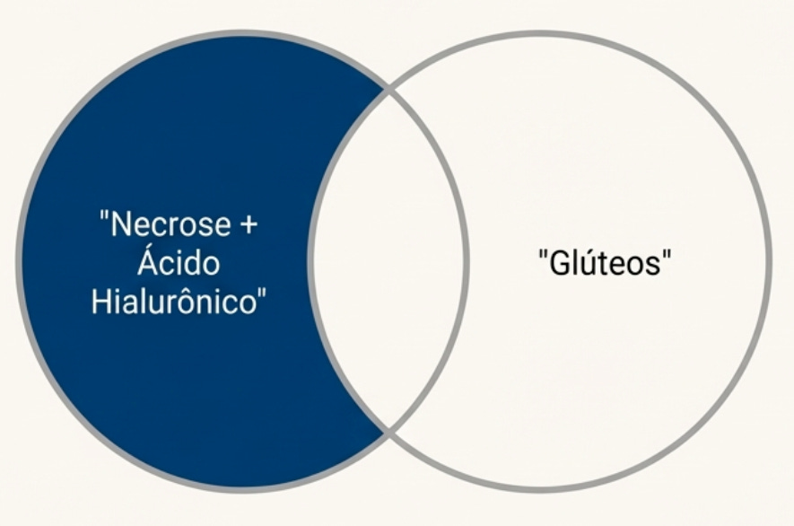 Nesse caso, suponha que você esteja pesquisando sobre complicações vasculares com necrose em Harmonização Facial. Algo bem específico, mas seus resultados estão poluídos por muitos artigos sobre complicações em procedimentos corporais (glúteos, pernas) que não te interessa. Você pode limpar sua busca: