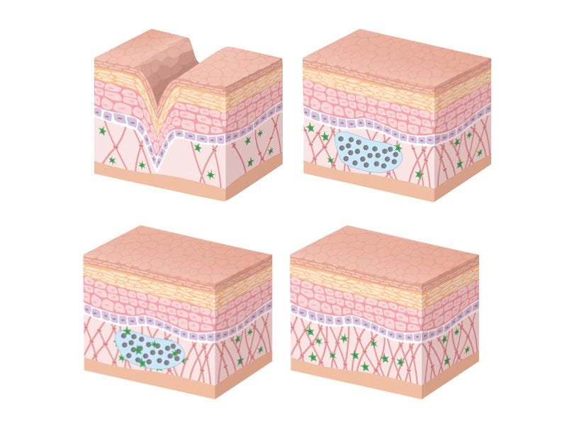 Já os demais a base de PLLA ou Hidroxiapatita de Cálcio, atuam como estimuladores de colágeno, e é este colágeno que mantém o efeito volumizador. Com efeitos que demoram mais a serem vistos, mas com maior longevidade e de fato a devolução do colágeno perdido com o envelhecimento.