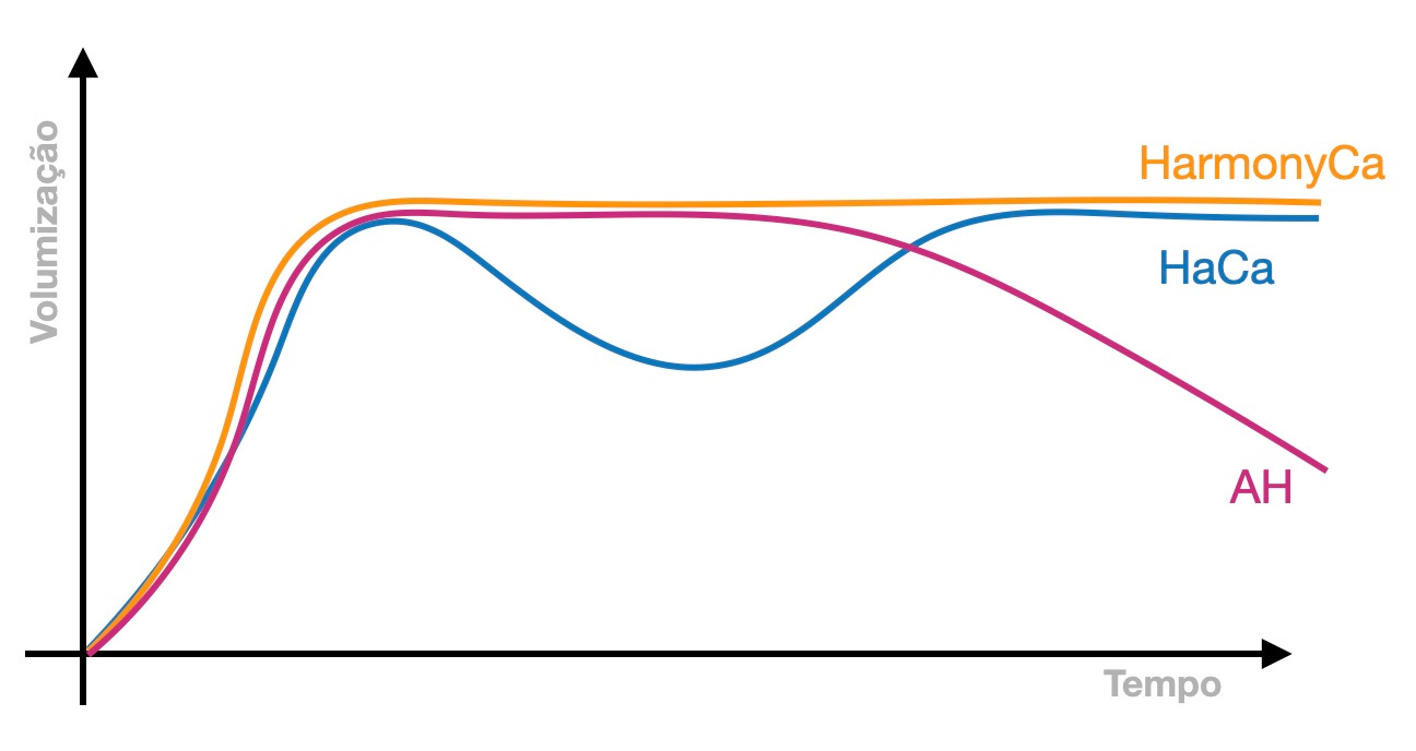 Veja que, na minha visão, o HarmonyCa® tem um quê de evolução. Ele consegue atender a duas demandas ao mesmo tempo: volumizar e estimular formação de colágeno, com propriedades de destaque dos de ambos principios ativos.