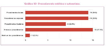 52,5% (21) dos entrevistados acreditam que um procedimento estético seria capaz de influenciar muito em sua autoestima (GRÁFICO 9).