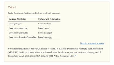 O resultado desse estudo clínico de Mauricio de Maio é importante, pois além do foco nos atributos emocionais, levando em conta não apenas a aparência estática da face, mas compreendendo como ela se expressa, também foi utilizado um protocolo clínico que pode ser reproduzido (3).