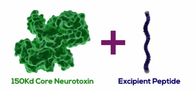 As primeiras marcas de toxina botulínica como o Botox® e o Dysport® tem, em sua composição, um envoltório proteico ao redor de cada molécula ativa de toxina, formando um complexo hemaglutinina-neurotoxina, que funciona como uma proteção para que a porção mais importante não seja atacada pelo organismo.
