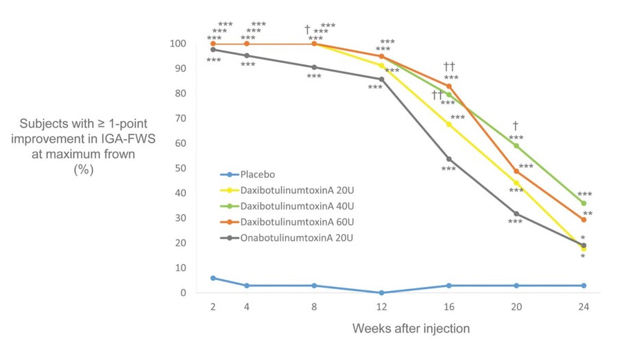 Comparando 20 U de ONAtoxinbotulinumA (Botox®) com 20, 40, 60U de DAXItoxinbotulinumA-lanm (Daxxify®) percebe-se uma maior efetividade do novo medicamento, né?