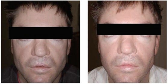Ditre (2009) relatou o uso off-label de ácido PLLA injetável para a correção da perda de volume facial após a remoção de implantes de bochecha malar, para produzir um lifting de bochecha e correção de rugas proeminentes do sulco nasolabial em um homem sem problemas médicos significativos. Um total de três tratamentos, usando dois frascos de ácido poli-L-láctico injetável por tratamento, foram administrados ao longo de 16 semanas. As fotografias foram tiradas na linha de base, durante o período de injeção de 16 semanas e em uma visita de avaliação pós-tratamento 35 dias após o tratamento final (21 semanas após a injeção inicial). Embora o paciente tenha perdido o acompanhamento, ele ficou muito satisfeito com os resultados estéticos na consulta de avaliação cinco semanas após o último tratamento e expressou o desejo de ser tratado com ácido poli-L-láctico no futuro. O ácido poli-L-láctico injetável pode ser uma boa opção para a correção da perda de volume facial por outros motivos que não a lipoatrofia relacionada ao vírus da imunodeficiência humana.