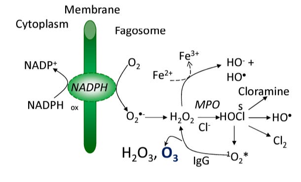 O ozônio é considerado uma biomolécula, pois nosso organismo produz uma molécula com as mesmas características químicas e papel no processo fisiológico de ativação dos anticorpos, em casos de inflamação e infecções.