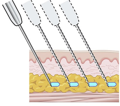 Penso que seja a técnica mais difundida dos preenchedores, usadas em diversas abordagens, apesar das limitações que existem em posicionar os preenchedores somente em planos mais superficiais (vamos falar sobre isso oportunamente).