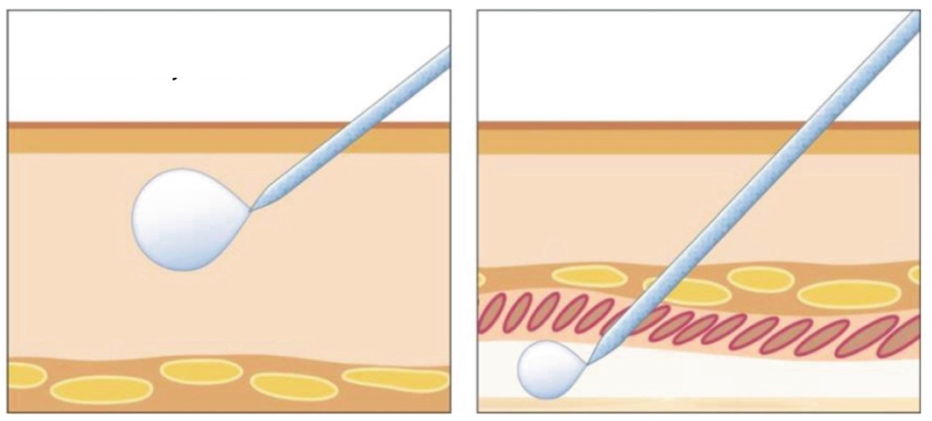 Alam, Murad; Tung, Rebecca (2018). Injection technique in neurotoxins and fillers: Planning and basic technique. Journal of the American Academy of Dermatology, 79(3), 407–419. 10.1016/j.jaad.2018.01.034