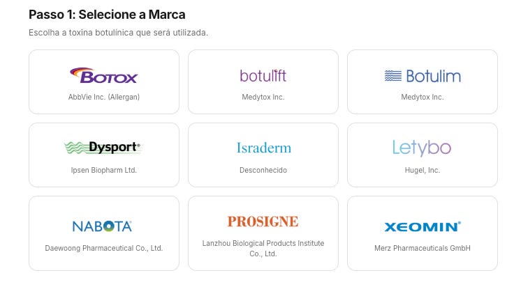 Para complicar, a matemática varia varia. Temos opções de reconstituição seca, molhada, da bula, para mesotoxina… E como se não bastasse, o mercado hoje oferece um verdadeiro cardápio com 9 marcas com ANVISA: Botox, Dysport, Xeomin, Botulift, Nabota, entre outras.
