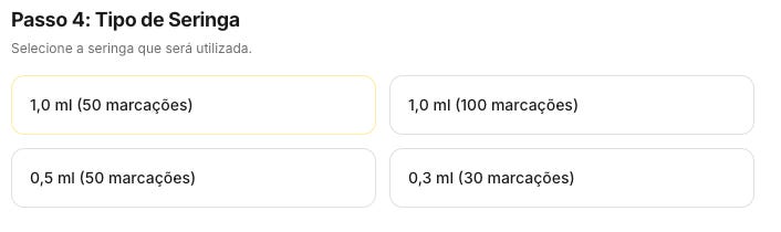 Você começa a apertar os olhos e pensar: “Espera, eu andei dois pauzinhos ou três? Se a seringa é de 0.3ml e tem 30 marcações, cada risco é... Meu Deus, cadê a calculadora do celular?!”. Sem a ferramenta certa, você acaba o dia estrábico, míope e sofrendo de “astigmatismo temporário induzido por seringa”.