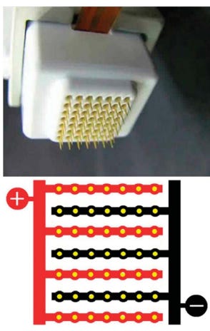 Múltiplas microagulhas banhadas a ouro que ultrapassam a epiderme, emitindo ondas de radiofrequência nas camadas mais profundas da pele, preservando a superfície. Necessita da placa de acoplamento para funcionar (Figura 4).