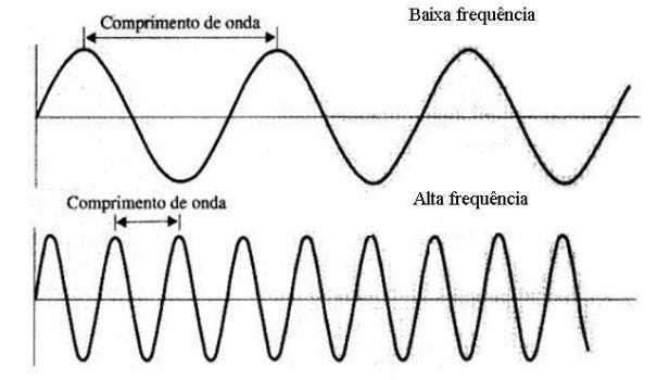 A confusão entre Frequência MAIOR e MENOR: Os termos podem ficar confusos, pois quanto maior o comprimento da onda, menor é a frequência. Frequência “maior” se refere a mais Hertz (mais Hertz, menor comprimento de onda) (Figura 2). O ideal é falar “Alta Energia” e “Baixa Energia”.