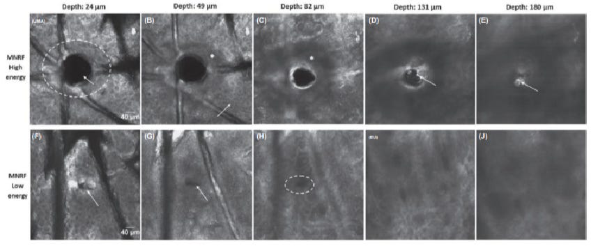 Hansen FS, Wenande E, Haedersdal M, Fuchs CSK. Microneedle fractional radiofrequency-induced micropores evaluated by in vivo reflectance confocal microscopy, optical coherence tomography, and histology. Skin Res Technol. 2019;25(6):896-904.