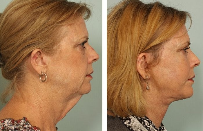 Um exemplo de situação clínica que só pode ser tratada cirurgicamente com um lift cirúrgico. Em situações de excesso de pele, só há uma alternativa: cirurgia plástica, e que deve ser realizado exclusivamente por um médico devidamente habilitado. Mas esta não é a única forma de tratar quando a causa do queixo-duplo for por acumulo de gordura, e aí que começaremos a discussão pois para acúmulos de gordura, podemos lançar mão de duas técnicas na Harmonização Facial (que muitas vezes se completam como veremos a seguir)