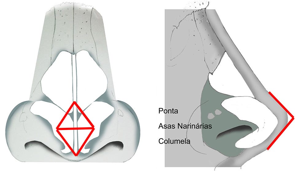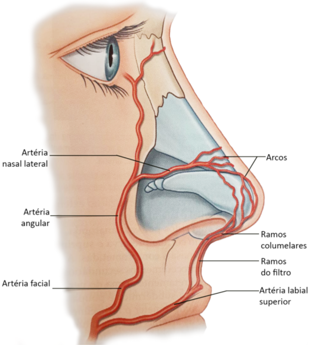 O amplo conhecimento da anatomia facial e nasal é fundamental para minimizar os riscos de injeção intravascular ou lesão de nervos (4). O nariz é uma estrutura tridimensional localizada no terço médio da face (10).