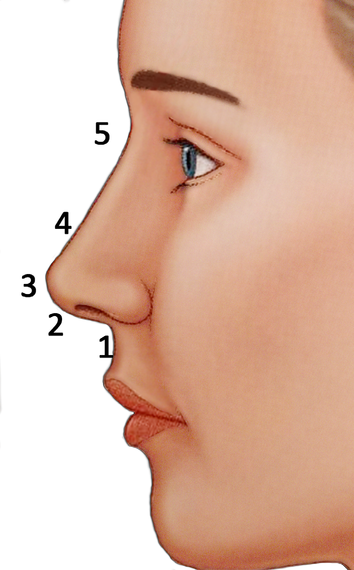 Furtado IR. Morfologia nasal: harmonia e proporção aplicadas à rinoplastia. Rev Bras Cir Plást. 2016;31(4):599-608.