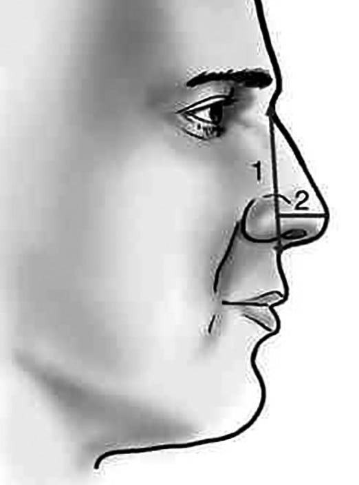 A antropometria aplicada à região nasal possibilita a visão do paciente em três incidências: de frente, de perfil e inferior (10).