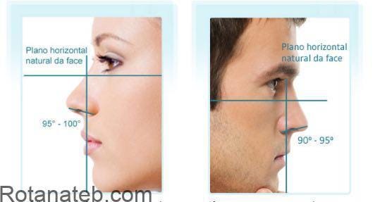 De acordo com a visão lateral, compreende-se o ângulo nasolabial como o fator que mensura os pontos anteriores e posteriores da narina. Ocorre a necessidade de optar pelo ângulo de 95-100 graus para mulheres e 90-95 para homens (SOUSA, online). Como se expressa visivelmente na imagem a seguir: