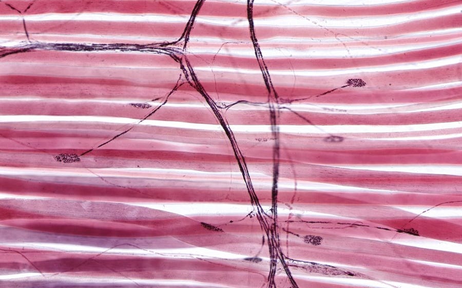 Cada fibra nervosa tem uma extensão do nervo que alcança uma única fibra muscular. Este ponto de contato nervo-fibra muscular chama-se junção neuromuscular. Nem todas as junções são afetadas pela toxina deixando algumas fibras ainda "ativas" e funcionais, daí a importância de dosar a quantidade certa de toxina para cada grupo muscular a ser tratado. Imagem: Fonte