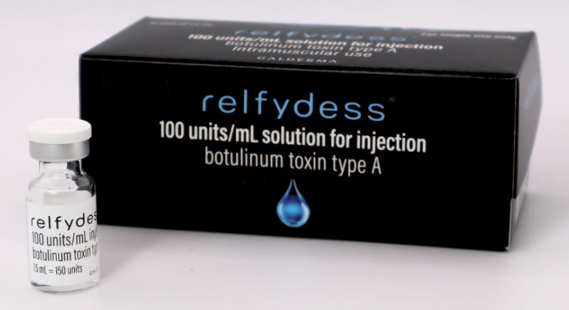 Enquanto a saga Allergan/Medytox se desenrolava, a Galderma, outro player de peso no mercado de estética, desenvolvia sua própria resposta. O Relfydess® (RelabotulinumtoxinA) representa uma nova geração de toxinas líquidas, focando não apenas na conveniência de um medicamento pronto pra uso, mas na otimização da molécula em si.